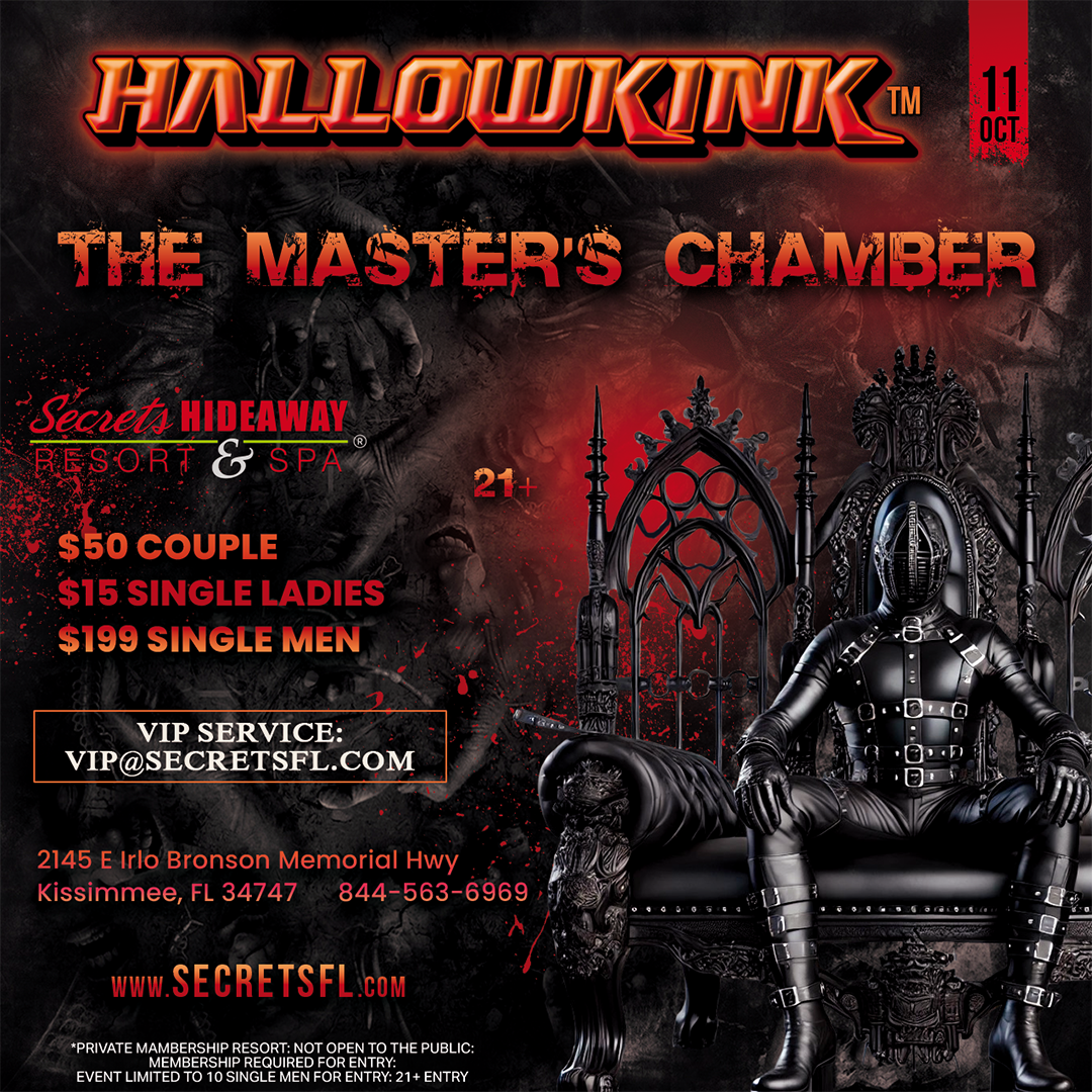 Step into the shadows of desire as Week Of Kink® presents Hallowkink™ "The Masters Chamber" on Saturday, October 11th. This dark, immersive experience delves into the provocative realms of BDSM, impact play, and the intricate dance of domination and submission. In The Masters Chamber, boundaries are not just pushed—they're shattered. Here, the visceral thrill of power exchange and the raw intensity of fetish play come together in a meticulously crafted space where fantasies are not merely imagined, but brought vividly to life.