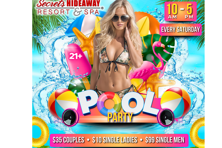 Get ready to indulge in the epitome of Saturday bliss at Secrets Hideaway's exclusive Saturday Pool Party, held from 10 am to 5 pm. Shed your inhibitions along with your clothes and immerse yourself in the epitome of sensual freedom at Orlando's hottest clothing-optional pool event. With the sun beaming down and the temperature rising, Secrets Hideaway invites you to strip down, cool off, and join your sexiest friends for a day of pure, unadulterated pleasure. Picture yourself lounging poolside, drink in hand, surrounded by the rhythmic beats of hot music and the sizzling presence of even hotter friends. Secrets Hideaway Resort and Spa's courtyard pool area, complemented by two outdoor tiki bars, forms the perfect backdrop for this seductive rendezvous, where you can let go, be free, and celebrate the heat of summer in the most alluring way possible.