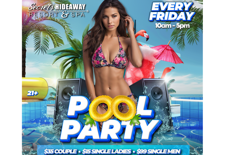 The Friday Pool Party at Secrets Hideaway invites you to unwind and celebrate the start of the weekend amidst a vibrant, tropical atmosphere. For those seeking a touch of luxury, renting a cabana offers eight hours of pure indulgence, providing a comfortable and intimate space to enjoy the company of your favorite friends. It's an opportunity to escape the routine, bask in the warm Florida sun, and connect with like-minded souls in an environment that exudes a sense of freedom and camaraderie. Starting your weekend off right with the Friday Pool Party guarantees an unforgettable experience, surrounded by the laughter, energy, and excitement of your Secret's friends, making it the ideal way to set the tone for an amazing weekend ahead.