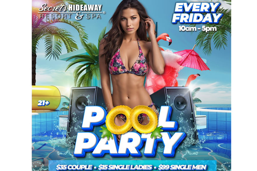 The Friday Pool Party at Secrets Hideaway invites you to unwind and celebrate the start of the weekend amidst a vibrant, tropical atmosphere. For those seeking a touch of luxury, renting a cabana offers eight hours of pure indulgence, providing a comfortable and intimate space to enjoy the company of your favorite friends. It's an opportunity to escape the routine, bask in the warm Florida sun, and connect with like-minded souls in an environment that exudes a sense of freedom and camaraderie. Starting your weekend off right with the Friday Pool Party guarantees an unforgettable experience, surrounded by the laughter, energy, and excitement of your Secret's friends, making it the ideal way to set the tone for an amazing weekend ahead.