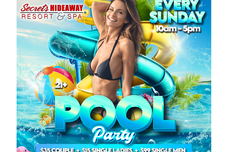 At the Sunday Pool Party, the atmosphere is a delightful blend of leisure and excitement. Meet new friends, catch up with your loved ones, and relish in the freedom of being your authentic self. For those seeking the epitome of comfort and privacy, reserving your own cabana elevates your experience. Complete with power outlets, soft lighting, curtains, and a ceiling fan, these cabanas offer a sanctuary where you can unwind, connect, and create unforgettable memories. Sundays are redefined at Secrets Hideaway as you spend the day just the way you've always dreamed – immersed in sunshine, surrounded by good company, and embracing the sheer freedom of being yourself. It's the perfect way to wrap up your weekend, setting the tone for a fresh, positive start to the week ahead.