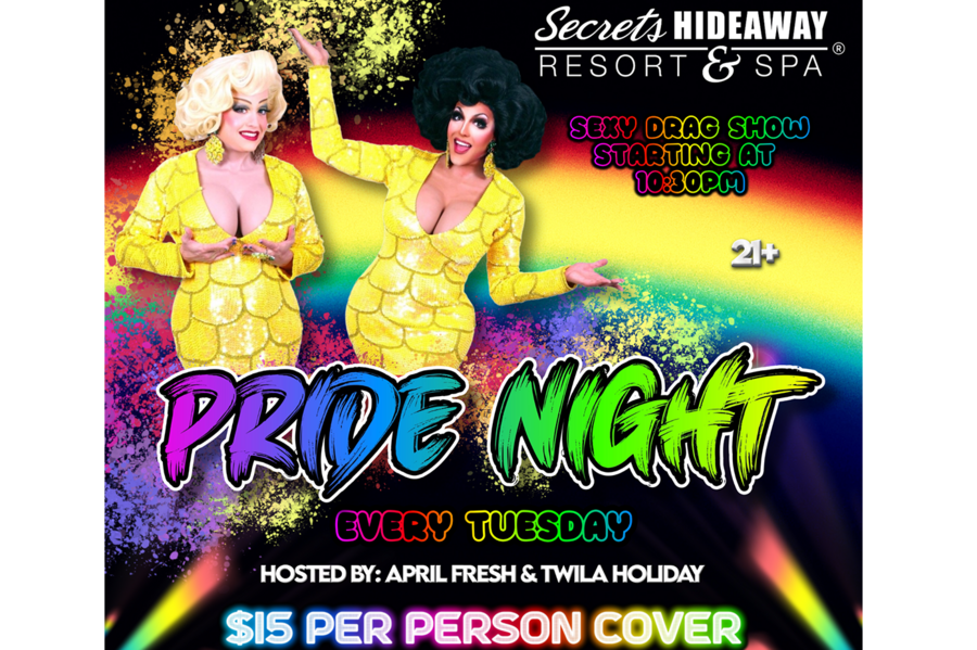 Secrets Hideaway Pride Night is not just a party; it's a declaration of love, acceptance, and the freedom to be who you are. The event will be filled with vibrant energy, dazzling lights, and an ambiance of acceptance and unity. As the clock strikes 10:30pm, the Sexy Drag Show will kick off, showcasing the incredible talent and creativity of drag artists, leaving the audience in awe. This event provides a safe and welcoming space for everyone, regardless of gender identity or sexual orientation, to come together, celebrate diversity, and embrace the power of love. With Twila Holiday and April Fresh as your hosts, prepare for an unforgettable night of pride, empowerment, and a whole lot of fabulousness that will leave you inspired and uplifted.