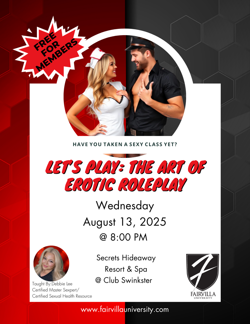 Ready to slip into something… playful? Whether you’re a total beginner or already have a favorite character, this provocative class will help you unlock the steamy world of erotic roleplay. Learn how to spark your imagination, communicate confidently, and build sexy scenes that feel empowering, fun, and totally authentic to you. From seductive scenarios and dirty talk tips to costumes, consent, and clever props — we’ll cover it all. Expect giggles, “aha!” moments, and maybe a few spicy surprises.