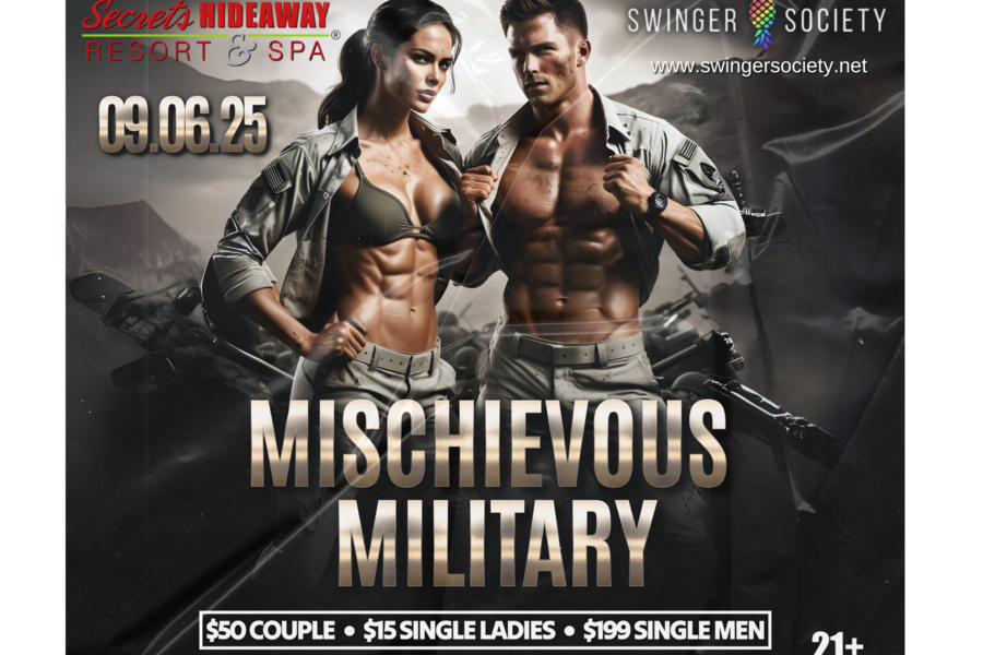 Stand at ease and gear up for seduction—Swingers Society rolls into Secrets Hideaway with “Mischievous Military” on Saturday, September 6th. From flirt‑worthy fatigues to scandalously skimpy dress whites, this is your invitation to salute, serve, and surrender to a night where discipline meets deliciously wicked fun. Whether you’re a commanding officer ready to take charge or a fresh recruit eager for your first mission, don your sexiest camo, shine those dog tags, and prepare to deploy your wild side on a dance floor pulsing with high‑energy beats.