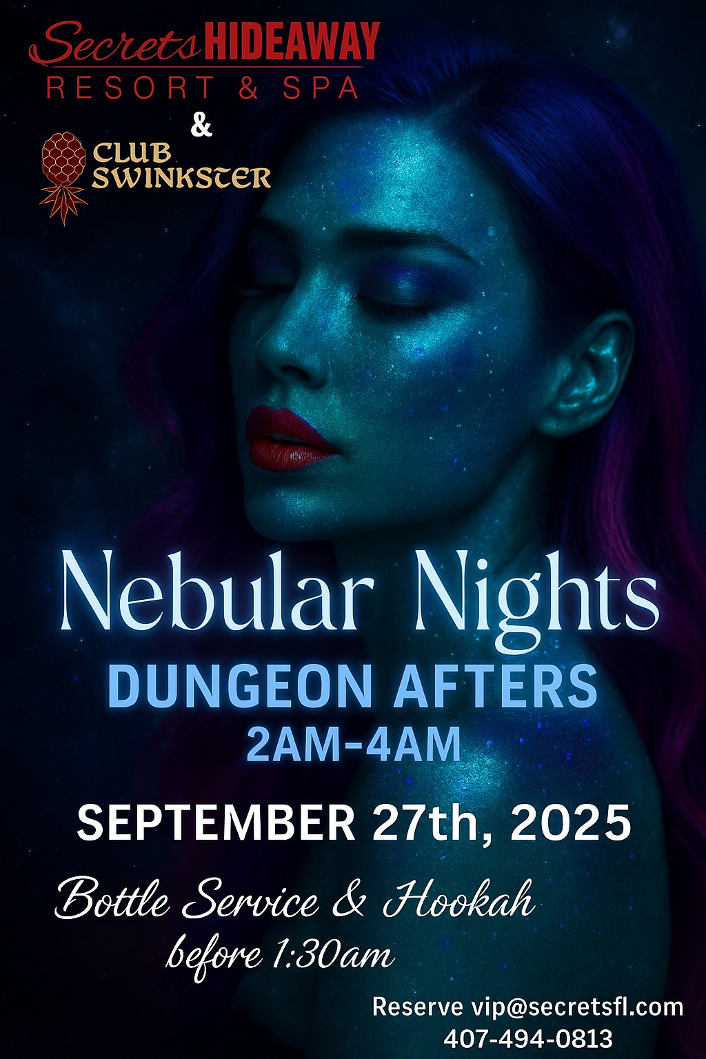 It’s 2:00am, but the night is far from over—welcome to Nebular Nights inside Club Swinkster™. For those craving more after the main event, “Nebular Night” opens its doors from 2am to 4am for an ultra-kinky experience that pushes boundaries and unleashes your deepest desires. Shadows flicker, toys gleam, and the sound of anticipation fills the air as doms, subs, and voyeurs gather for an unforgettable late-night rendezvous.