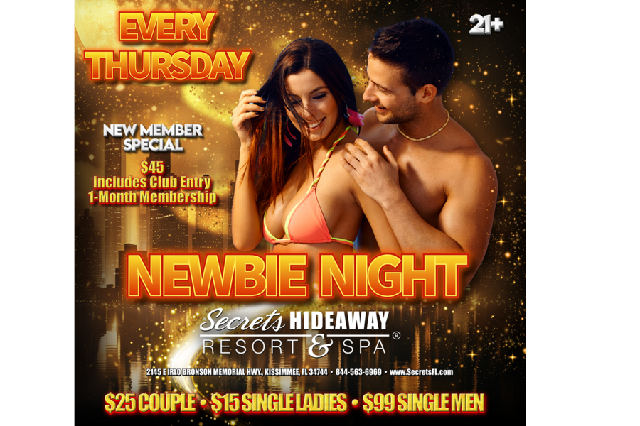 Every Thursday night, Secrets Hideaway invites you to dive into a world of exciting possibilities at our Meet & Greet Newbie Night. If you're new to the lifestyle or simply looking to expand your circle of like-minded friends, this is the perfect event for you. Imagine a vibrant atmosphere filled with diverse and open-minded individuals, all eager to explore the realms of sensuality and connection. For an incredible New Member Special price of just $45 per couple, you not only gain access to the hottest newbie night in the industry but also receive a one-month membership to Secrets Hideaway Resort and Spa. It's an opportunity to step into a realm of pleasure, where you can create your own secrets and embark on a journey of exploration in the company of fellow enthusiasts.