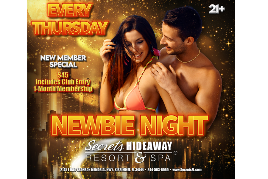 Every Thursday night, Secrets Hideaway invites you to dive into a world of exciting possibilities at our Meet & Greet Newbie Night. If you're new to the lifestyle or simply looking to expand your circle of like-minded friends, this is the perfect event for you. Imagine a vibrant atmosphere filled with diverse and open-minded individuals, all eager to explore the realms of sensuality and connection. For an incredible New Member Special price of just $45 per couple, you not only gain access to the hottest newbie night in the industry but also receive a one-month membership to Secrets Hideaway Resort and Spa. It's an opportunity to step into a realm of pleasure, where you can create your own secrets and embark on a journey of exploration in the company of fellow enthusiasts.