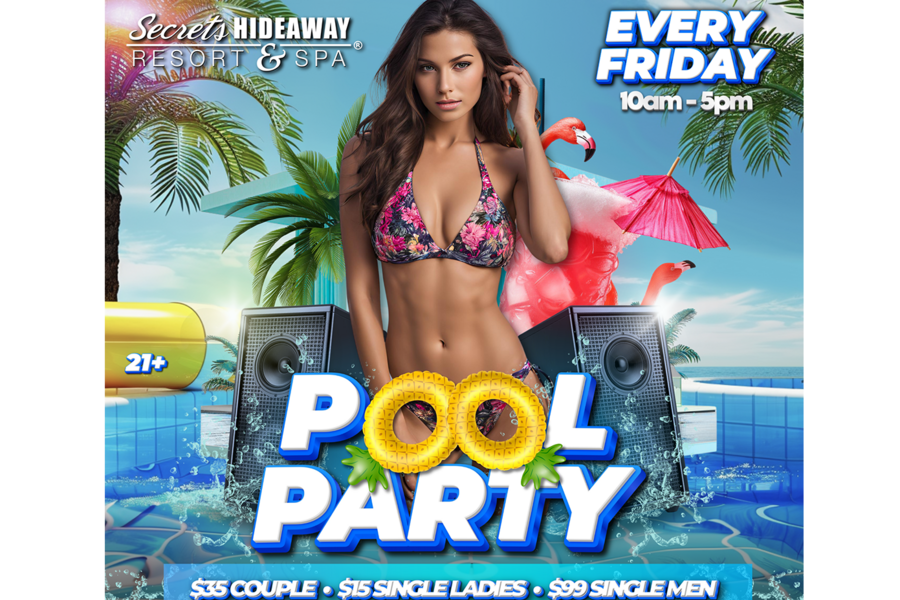 The Friday Pool Party at Secrets Hideaway invites you to unwind and celebrate the start of the weekend amidst a vibrant, tropical atmosphere. For those seeking a touch of luxury, renting a cabana offers eight hours of pure indulgence, providing a comfortable and intimate space to enjoy the company of your favorite friends. It's an opportunity to escape the routine, bask in the warm Florida sun, and connect with like-minded souls in an environment that exudes a sense of freedom and camaraderie. Starting your weekend off right with the Friday Pool Party guarantees an unforgettable experience, surrounded by the laughter, energy, and excitement of your Secret's friends, making it the ideal way to set the tone for an amazing weekend ahead.