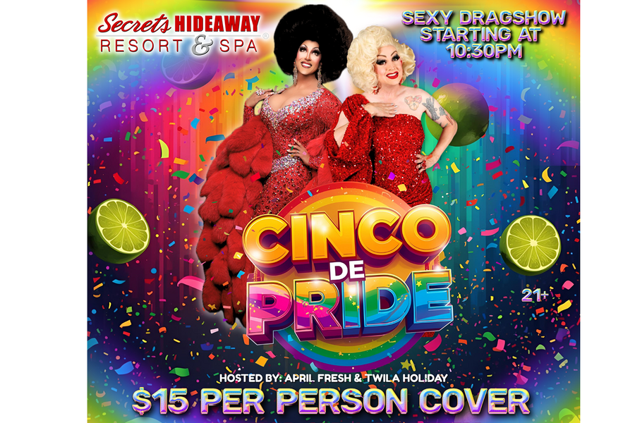 Secrets Hideaway presents “Cinco De Pride” on Tuesday, May 5th! Celebrate the perfect fusion of vibrant Pride energy and spicy Cinco de Mayo flavor as Secrets transforms into a rainbow-soaked fiesta of love, unity, and irresistible fun. Come dressed in your brightest colors, boldest prints, or your sexiest fiesta-inspired look and let your pride shine as the night comes alive with music, passion, and celebration.