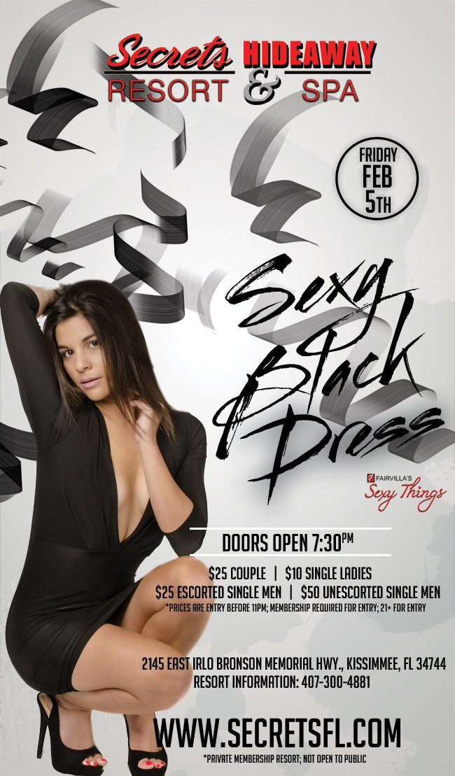 Slinky, Sassy and yes Sexy. Every lady has an SBD (Sexy Black Dress), and tonight at Secrets Hideaway it’s time to show it off. Don’t worry about digging through your closet for something to wear, dare to bare some leg in your tiniest black dress and come out for a night of sexy fun! Guys don’t forget you can wear black too. Imagine watching your sexy lady shimmy on the dance floor. Any way you look at it a little black dress is simply HOT!!! Whether it’s low cut or a micro mini we want to see how short you can wear it. It’s time to slip into your little black dress and head to Club Secret.