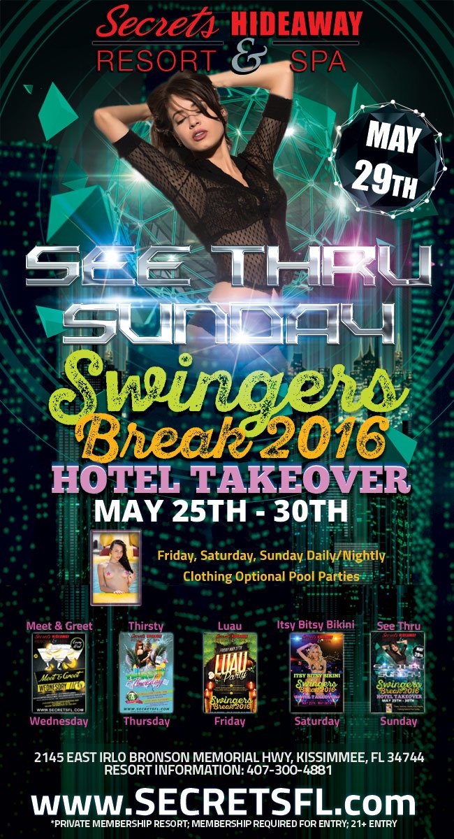 $10 Swingers Break Single Male Day Pass ONLY $25 Swingers Break Single Male Night Pass ONLY $50Party/Event & Hotel Information: