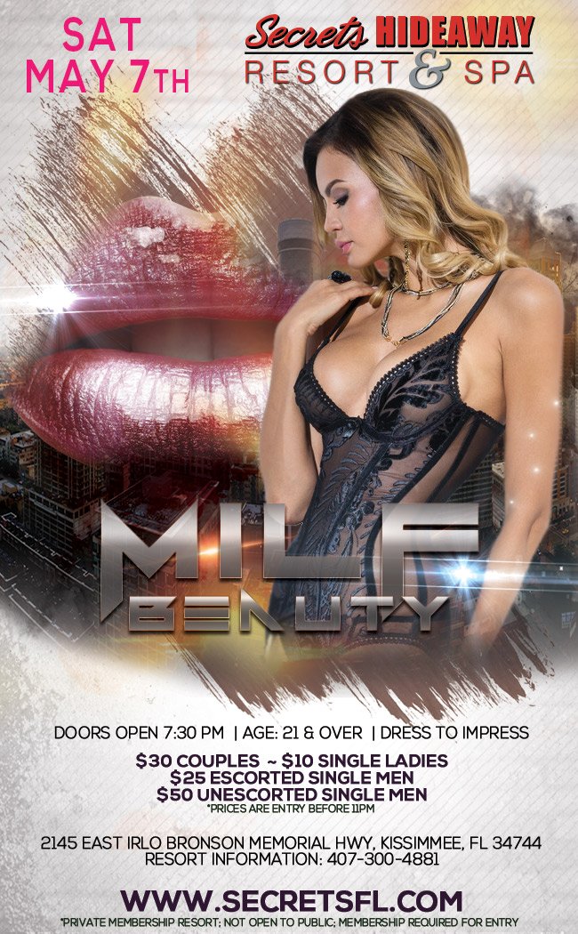Calling all MILF’s and MILF lovers. Join us for the time of your life at Secrets Hideaway. Everyone loves a good MILF party, and we here at Club Secret are no different. MILF’s know what they want and how to have lots of sexy fun. That good looking MILF over there might teach you a thing or two. So gentlemen, bring your own MILF to share with your friends tonight.