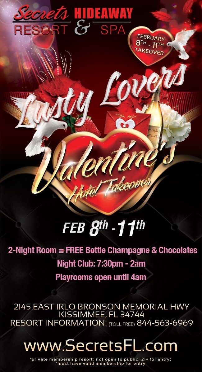 Secrets Hideaway / Club Secret has always been an upscale event where couples tend to pamper each other. If you missed our New Years Eve hotel takeover you won’t want to miss this opportunity.