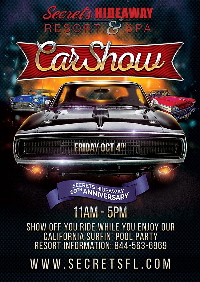 THIS Friday! Secrets Hideaway is kicking off our 10th Anniversary Celebration with a very special CAR SHOW from 11am -5pm!