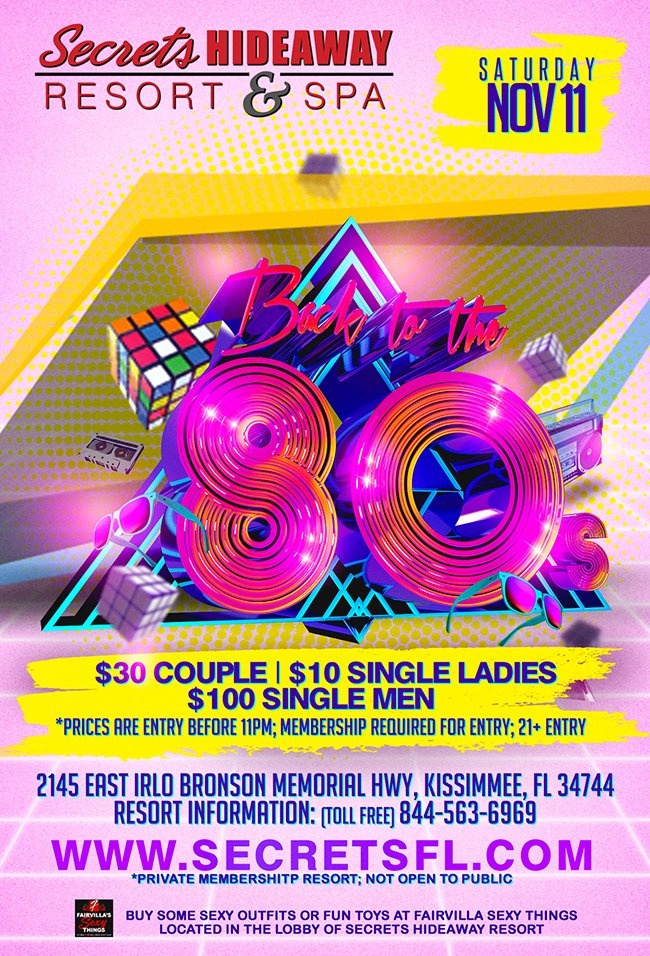 NYE is just around the corner. Make sure you book your room before they are gone!!! Rooms will sell out FAST!!! This year's theme is Studio 54: 2nd Edition - "Walking on Stardust." Studio 54 was the New York nightlife mecca and epicenter of excess from the late 70s to early 80s. It also served as the proving ground for the biggest disco, soul, boogie and funk records of that decadent era. It is this party vibe Secrets Hideaway is bringing to you at our NYE Total Hotel Takeover. Join Secrets Hideaway in the main club for a formal flashback to Studio 54. Club Secret will be hoppin’ with todays’ Top 40 and House.
